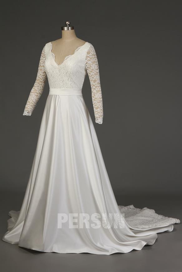Envisagez-vous de vous marier en hiver ? Avez-vous choisi votre robe de mariée ? Si non, nous aimerions vous recommander des modèles de robes de mariée qui peuvent vous faire tomber amoureux. Robe de mariée manche mi-lognue en dentelle guipure à petite traîne Une des robes de mariée que nos clientes aiment le plus, et nous aussi. Ce beau modèle pourrait être défini comme une pure élégance, car il est simple et sa coupe croisée sur la poitrine, ses manches longues, une petite queue qui traîne et la chute du tissu en font une robe unique. C'est parfait pour l'hiver ! Robe de mariée sirène... Lire la suite